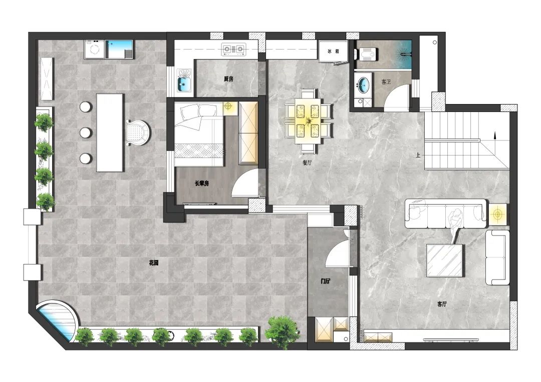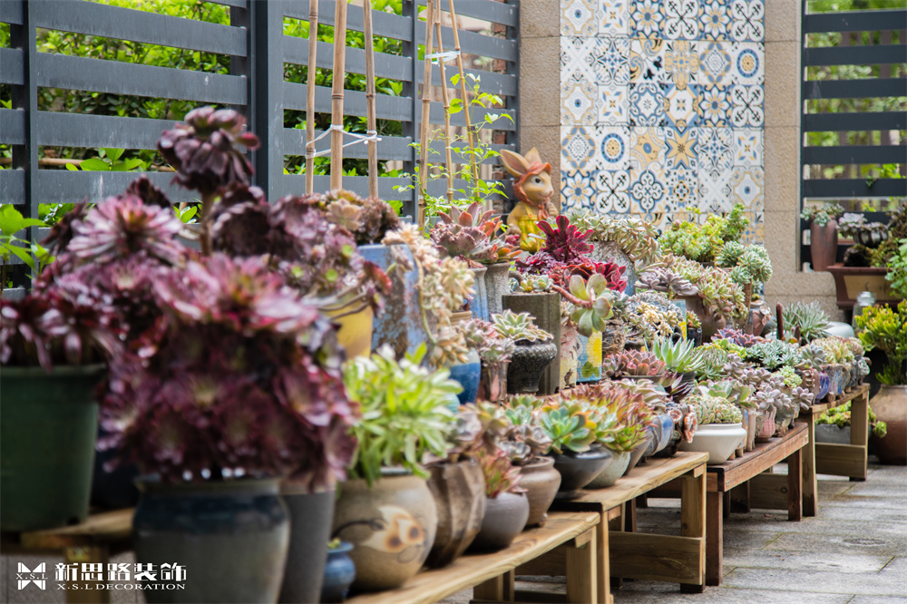 生活中任何一個(gè)看似平凡的生活,只要你愿意澆灌理想與情懷,終會(huì)變?yōu)?ldquo;詩(shī)和遠(yuǎn)方的田野”屋主十分喜愛(ài)自然。家里擁有貓咪和多肉植物,便在入戶花園的兩側(cè)設(shè)置了植物架,放置喜愛(ài)的植物,花園一抹艷麗的粉紅,在任何一個(gè)角落,都能體會(huì)到一家人悠然自得的生活態(tài)度和陽(yáng)光般明媚的心情感受。