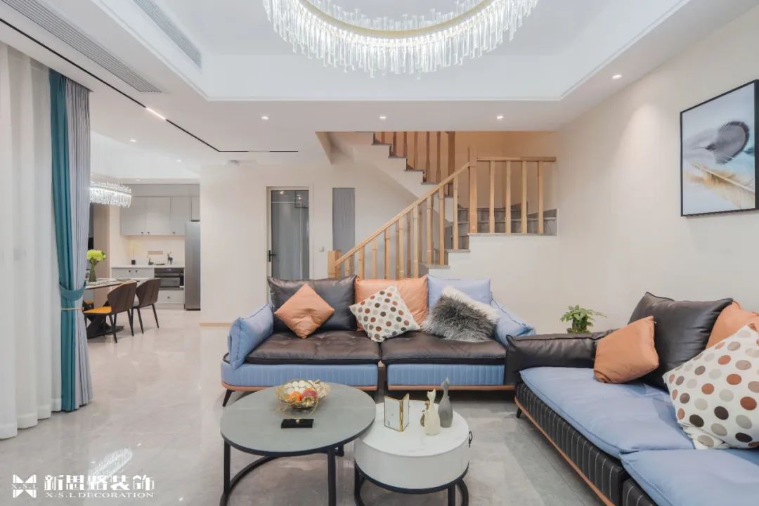 整個(gè)空間以溫潤(rùn)的顏色為基底,輔以材質(zhì)與顏色的碰撞,光線與空間互動(dòng),營(yíng)造出簡(jiǎn)約優(yōu)雅現(xiàn)代格調(diào),空間是光影的容器,進(jìn)入客廳區(qū)域后迎向大面的南向采光,光線透過(guò)窗緩緩進(jìn)入室內(nèi),在柔光輕撫下迎接日常的序幕。挑高的空間立體層次,使行走其中的動(dòng)線更加自由靈活。