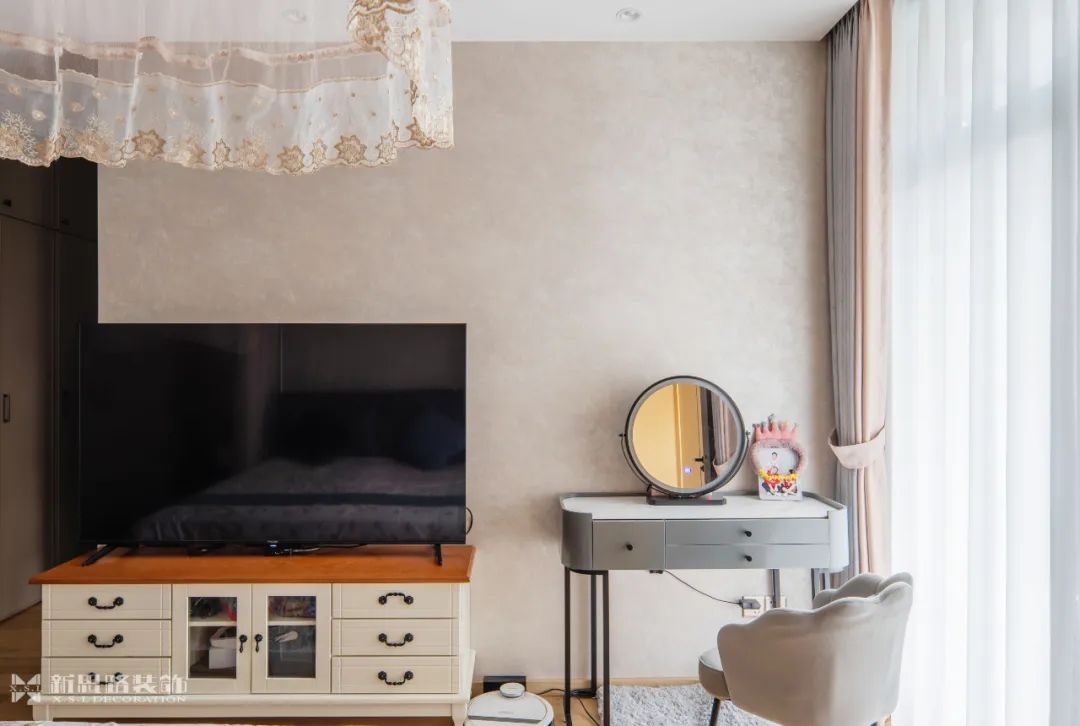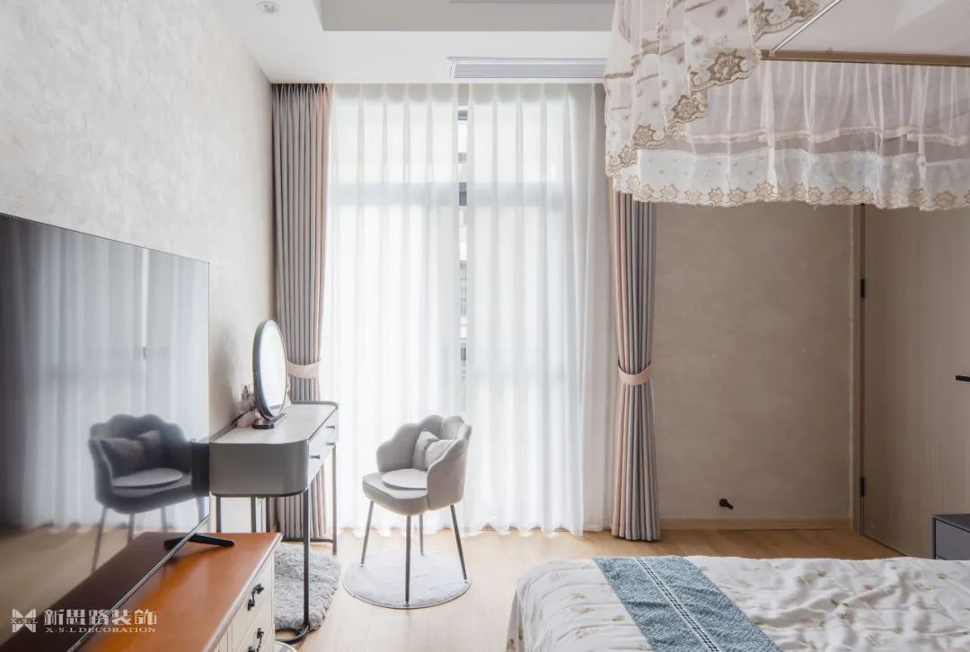 主臥的氛圍在柔和的線條中趨于平靜,皮革與布藝的使用柔化了空間的表情,讓人倍感放松。每當(dāng)清晨,光線透過(guò)窗戶傾瀉而入,家便擁有了新的心跳,每一寸空間都隨著光影的移動(dòng)而逐漸蘇醒。