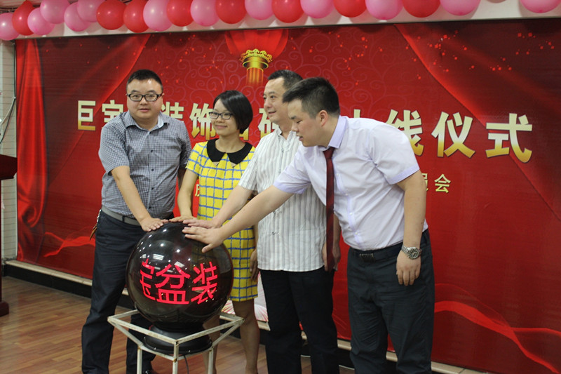 沙區(qū)經(jīng)信委李主任(右二)、巨寶盆裝飾網(wǎng)負(fù)責(zé)人、李總(左一)共同啟動(dòng)水晶球