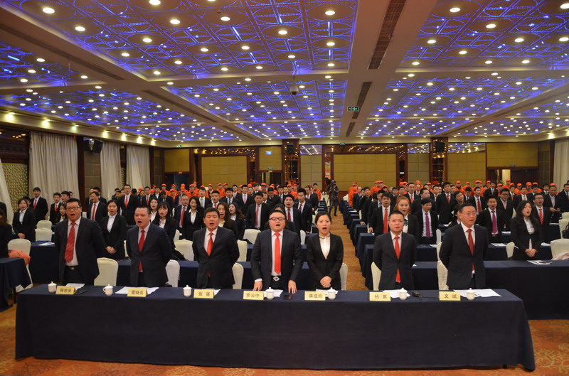 大會(huì)開場(chǎng),全體員工起立宣讀公司口號(hào)