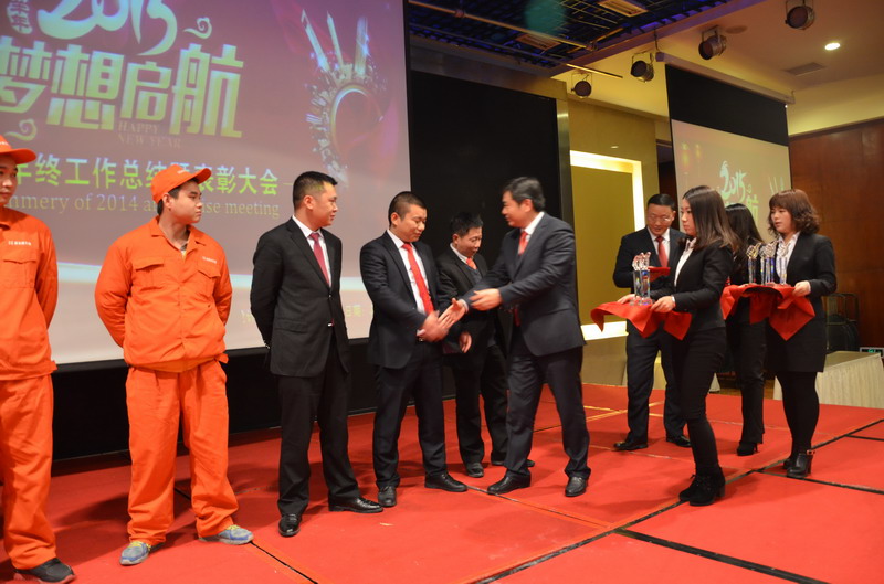 最后進(jìn)行的是本次大會(huì)的一項(xiàng)重要議程——表彰大會(huì)。來自南坪、江北、沙坪壩和工程部的13位優(yōu)秀員工受到了嘉獎(jiǎng)表彰,李總、張總、文經(jīng)理分別為獲獎(jiǎng)?wù)哳C發(fā)了榮譽(yù)證書和獎(jiǎng)金。在2014年,這些優(yōu)秀員工在自己的崗位上,愛崗敬業(yè),為公司的發(fā)展奉獻(xiàn)青春和熱血,在平凡的崗位上做出了不平凡的成績(jī),是所有新思路人學(xué)習(xí)的榜樣。