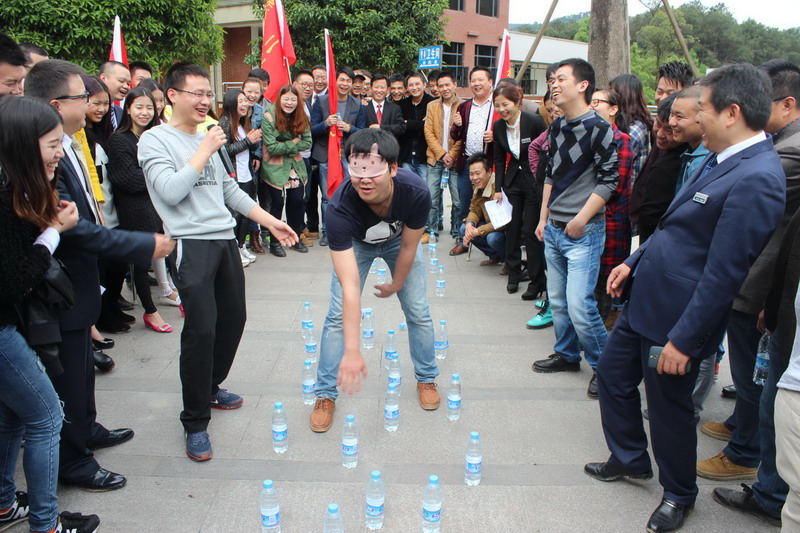 活動中,大家不分年齡大小、不論職位高低,全身心投入,體驗團(tuán)隊活力,感受彼此友情,改善交際關(guān)系,融洽團(tuán)隊合作精神。在“歌詞大接龍”游戲中,大家巧用團(tuán)隊智慧,為了爭奪“麥王”頭銜而使出渾身解數(shù)。在隨后的“穿越地雷陣”、“團(tuán)隊踢毽子”、“皮球大作戰(zhàn)”等游戲中,所有隊員在各自隊長的帶領(lǐng)下,相互信任、通力協(xié)作,充分發(fā)揮團(tuán)隊合作的力量,為了最后的勝利而全力以赴。經(jīng)過3個小時的激烈比拼,第2隊“神鋒隊”隊?wèi){借出色的團(tuán)隊協(xié)作能力獲得了最后的冠軍,每個隊員也都獲得了很有紀(jì)念意義的獎品,整個拓展活動圓滿結(jié)束。