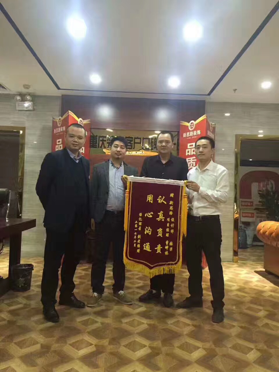 4月1日,來自保億麗景紫園的業(yè)主劉老師將一面印有“認真負責,用心溝通”的大紅錦旗交到渝北店雷店長手中,以感謝新思路裝飾高品質(zhì)的裝修質(zhì)量和服務(wù)水平。