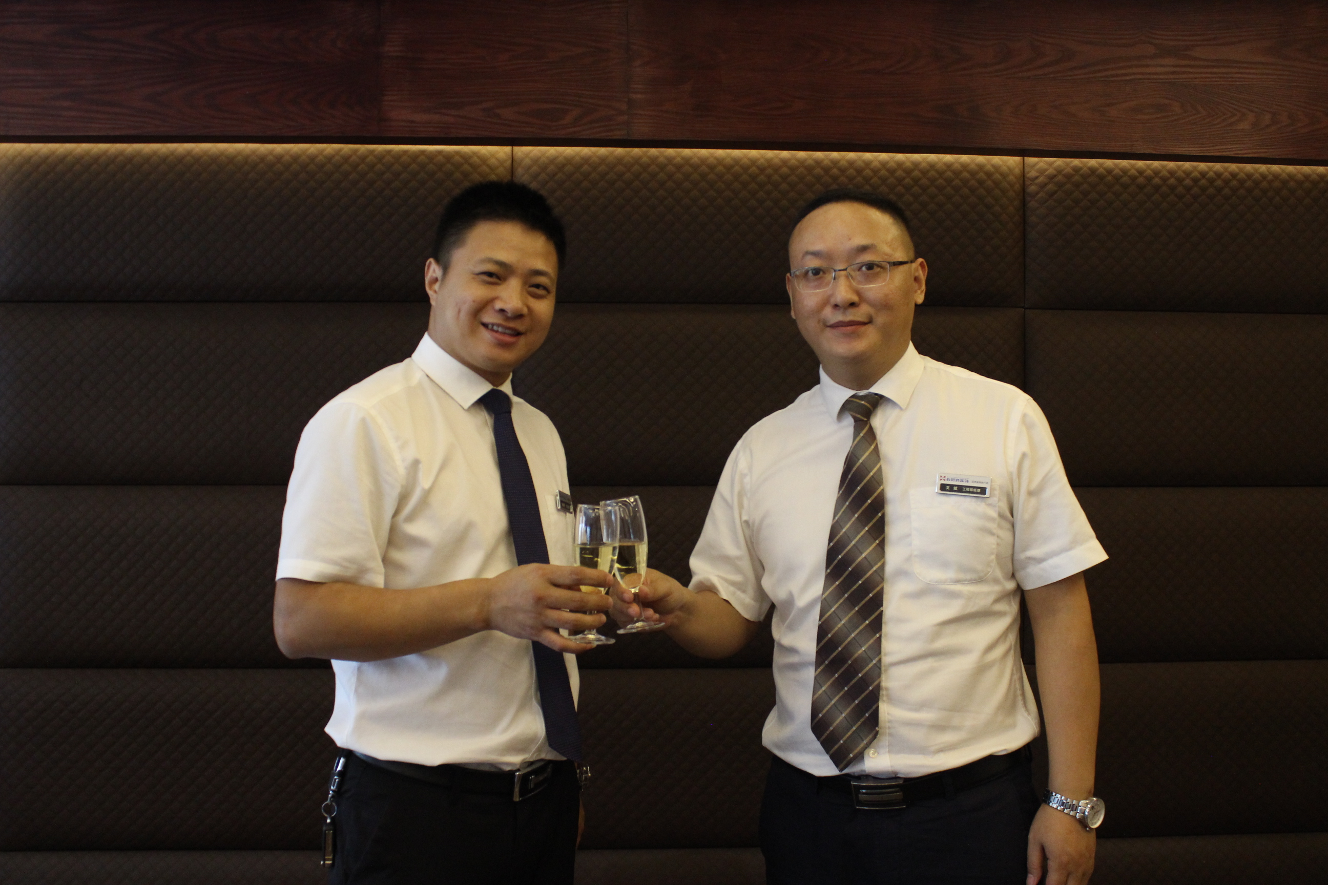 工程部文經(jīng)理與張經(jīng)理碰杯慶祝新思路生日