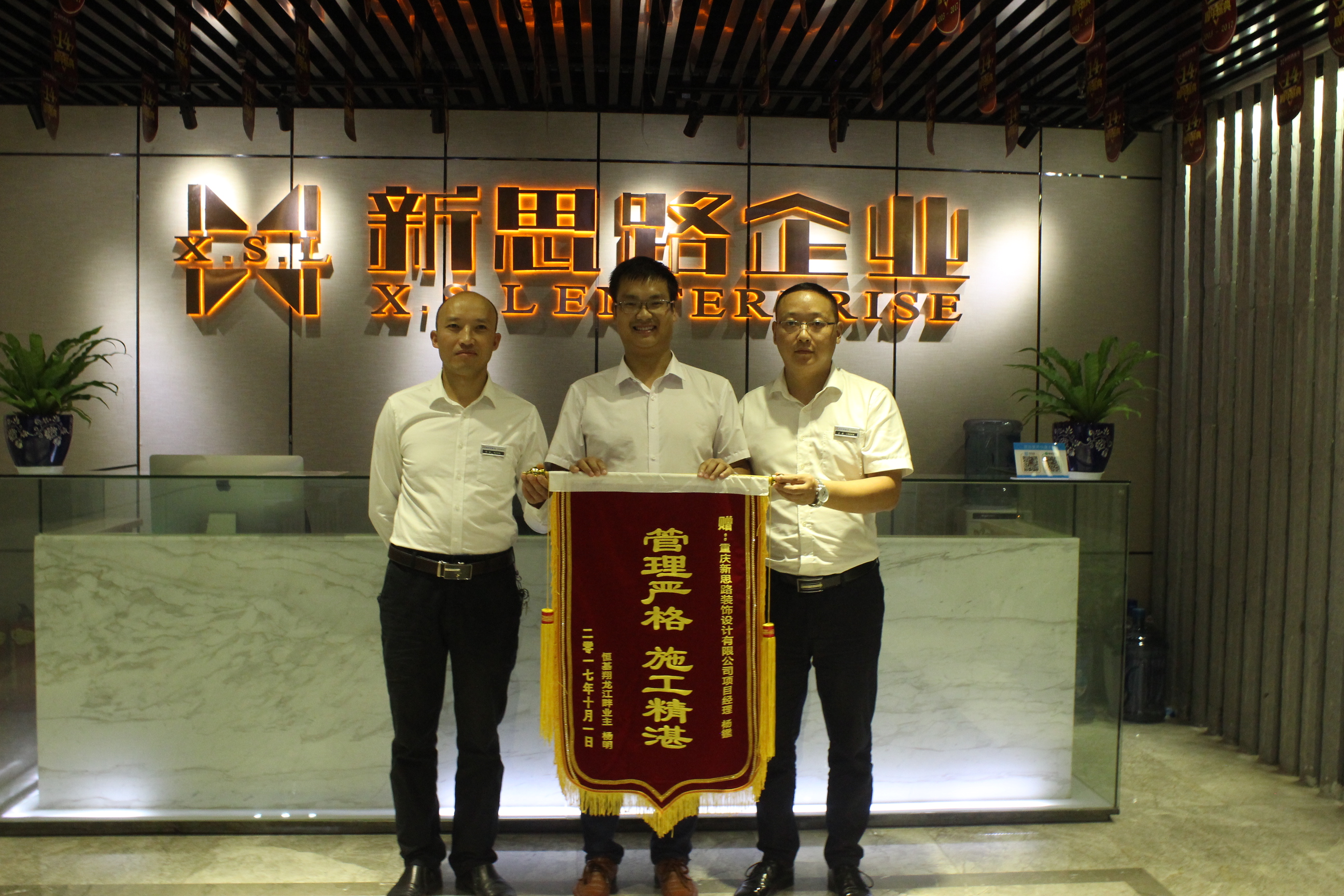 10月9日,來自恒基·翔龍江畔的業(yè)主楊老師將一面印有“管理嚴格,施工精湛”的大紅錦旗交到工程部文經(jīng)理手中,以感謝新思路裝飾高品質(zhì)的裝修質(zhì)量和管理水平。
