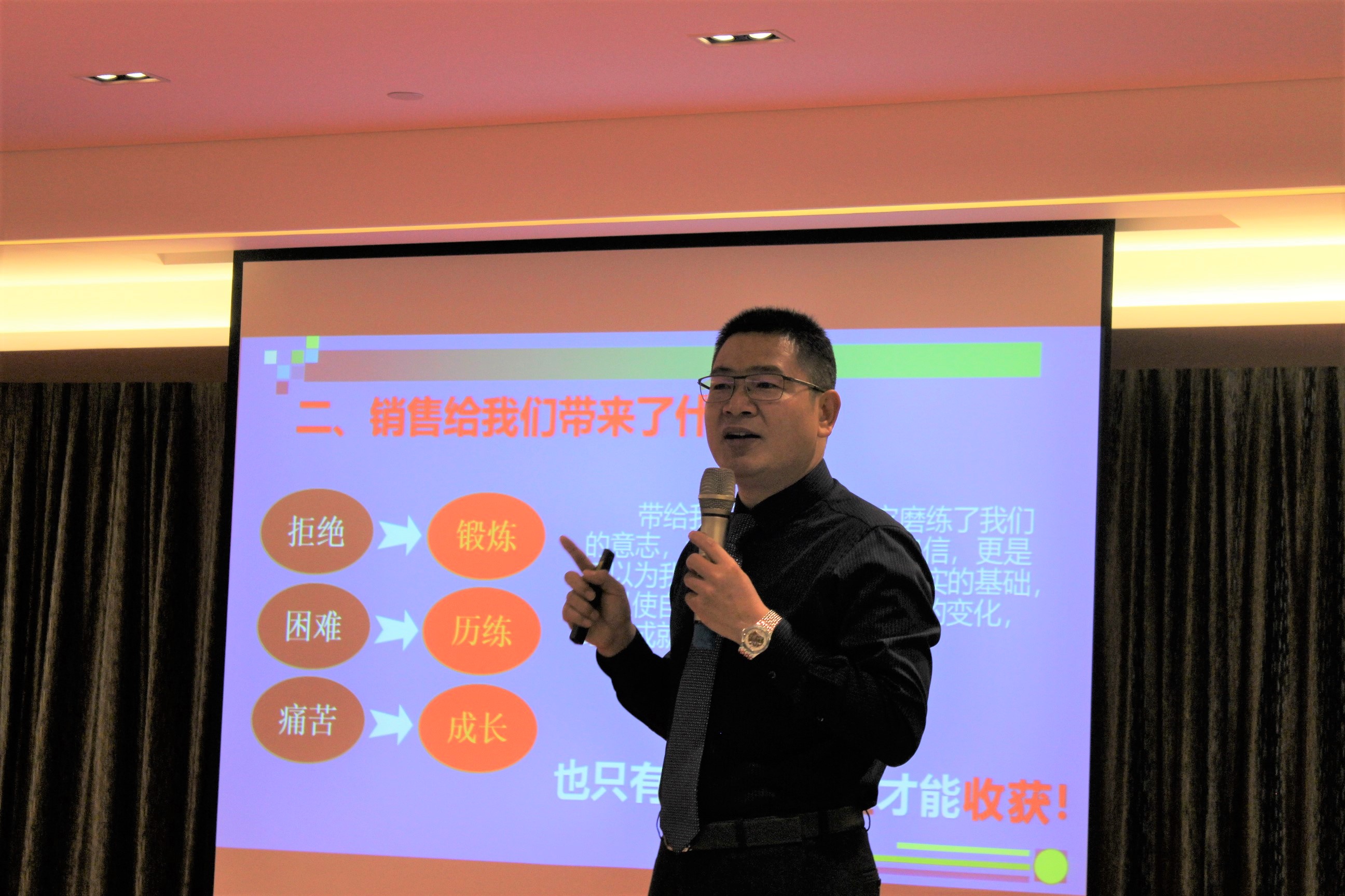 最后,張總用了一段致敬銷(xiāo)售人的話(huà),對(duì)于我們來(lái)說(shuō)非常有感觸!他講到:回首我們走過(guò)的銷(xiāo)售之路,市場(chǎng)競(jìng)爭(zhēng)異常激烈,一路上艱辛與痛苦相隨,在紅海中搏斗;初始的興奮、后來(lái)的掙扎,也成就了我的現(xiàn)在;我們辛勤付出,只為收獲,我們同努力,共歡笑,感謝曾經(jīng)的拼搏,感謝自己,只因我們有幸攜手戰(zhàn)斗過(guò)!曾經(jīng)的時(shí)光,是自我蛻變的時(shí)光;曾經(jīng)的歲月,是激情燃燒的歲月;我要感謝我的過(guò)去和曾經(jīng),正因?yàn)檫@些經(jīng)歷讓我成長(zhǎng)!過(guò)去的成績(jī)已然過(guò)去,未來(lái)的高峰我們還需攀登,因?yàn)槲覀兿胍懈玫陌l(fā)展和更好的生活,也不想虛度年華,更因?yàn)槲覀兿霝樽约旱娜松粝鹿廨x的一頁(yè),成就自我,不枉此生。因?yàn)槲覀兪且恢?yōu)秀的精英團(tuán)隊(duì),更是一支敢打敢拼的團(tuán)隊(duì),只要我們努力前行,美好的人生和未來(lái),我們定會(huì)擁有!