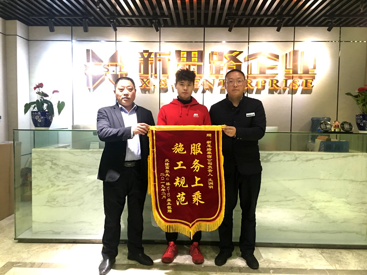 2019年2月27日上午,來(lái)自慶隆高爾夫的歐老師專程來(lái)到南坪總部,將一面印有“服務(wù)上乘,施工規(guī)范”的錦旗交給我們的項(xiàng)目經(jīng)理文經(jīng)理手中,以感謝新思路裝飾高品質(zhì)工藝和優(yōu)質(zhì)貼心的家裝服務(wù)。