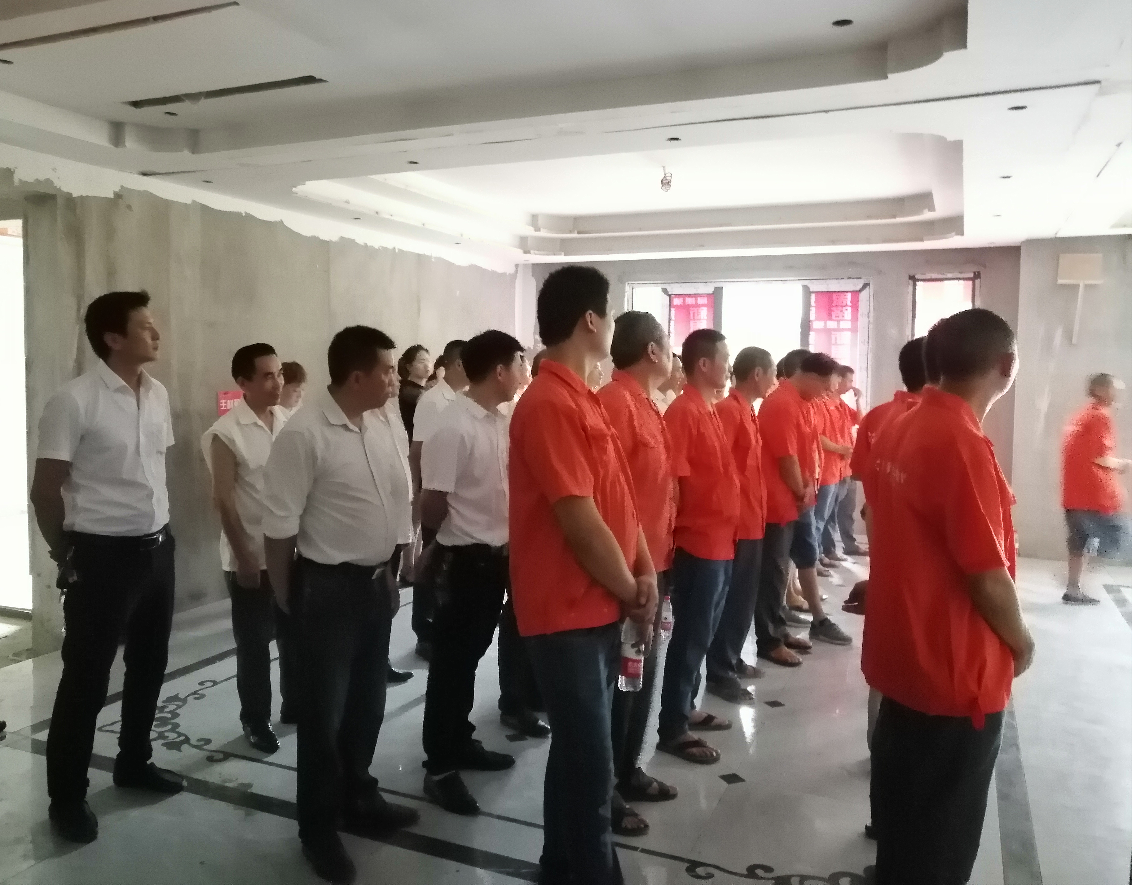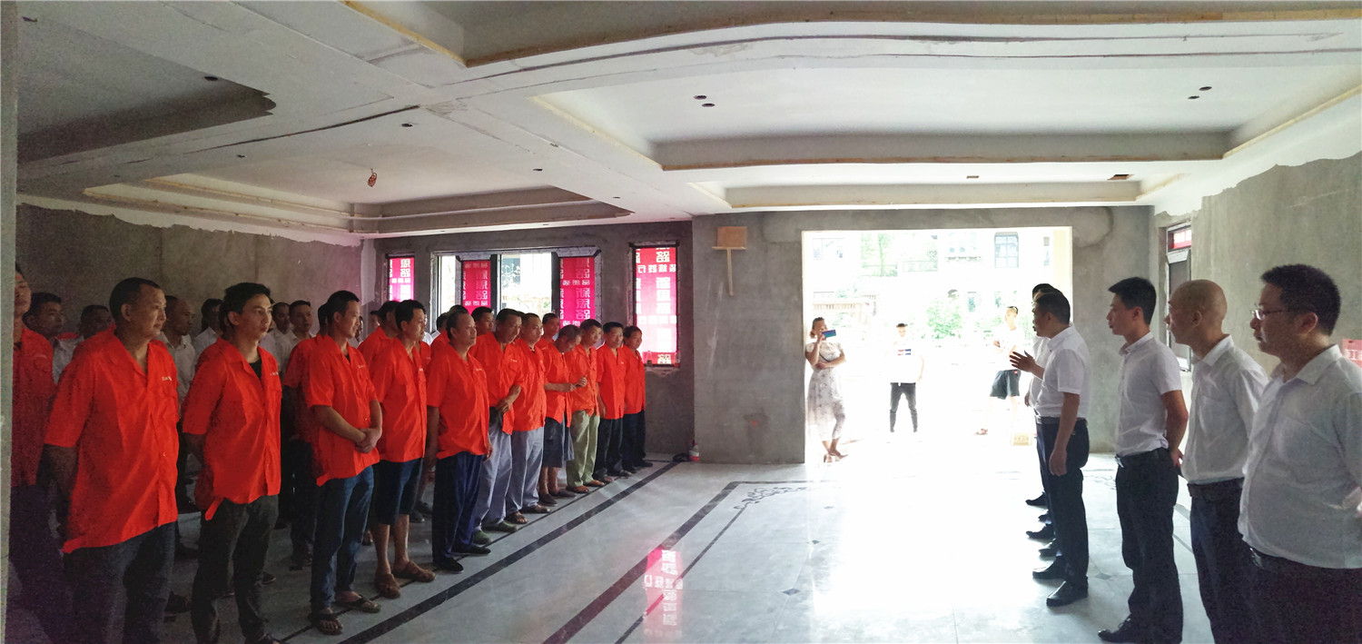 給工人和項(xiàng)目經(jīng)理整隊(duì),展現(xiàn)良好精神面貌