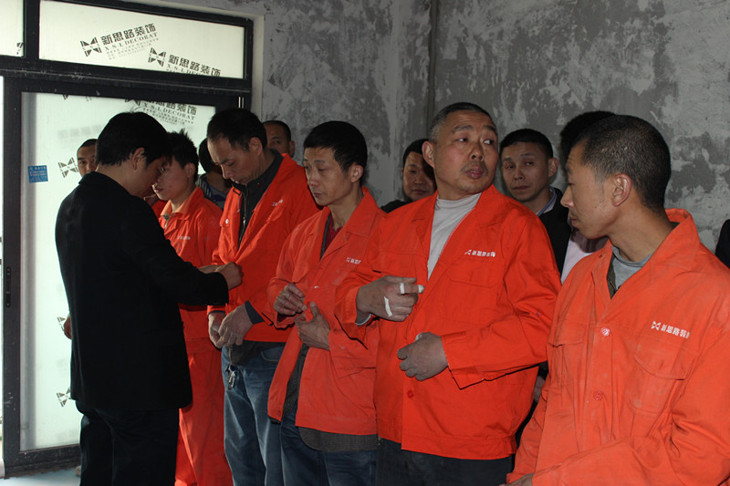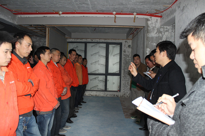 此次培訓(xùn)由具有二十多年施工經(jīng)驗(yàn)的張總親自主持。首先,張總以提問的形式宣講了公司的基本信息和企業(yè)文化,同工人們進(jìn)行了熱烈互動(dòng),對于回答正確的工人,當(dāng)場給予現(xiàn)金獎(jiǎng)勵(lì)。張總強(qiáng)調(diào),作為新思路裝飾的一員,牢記公司的一些基本信息不僅能加強(qiáng)對公司的了解,同時(shí)也是展現(xiàn)新思路員工職業(yè)素養(yǎng)和形象的新窗口。隨后張總又從泥水施工新工藝技術(shù)、工序流程、規(guī)范標(biāo)準(zhǔn)、注意事項(xiàng)等方面對工人們進(jìn)行了專業(yè)培訓(xùn)。在培訓(xùn)過程中,張總以現(xiàn)場在施工工地為實(shí)例,通過一些鮮活的事例,比如一根線,兩顆釘子,怎樣找水平;平整度、垂直度如何檢測;磚與磚接縫高低差標(biāo)準(zhǔn);陰陽角角度差等,進(jìn)行現(xiàn)場示范和講解。工人們也積極發(fā)言,提出一些獨(dú)到的觀點(diǎn)和見解,張總也熱情耐心地同他們交流討論,現(xiàn)場氣氛輕松而熱烈。