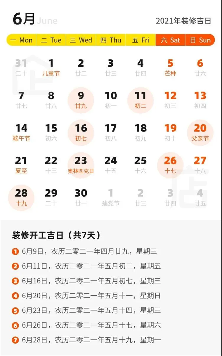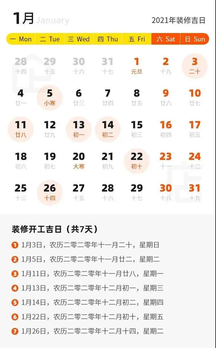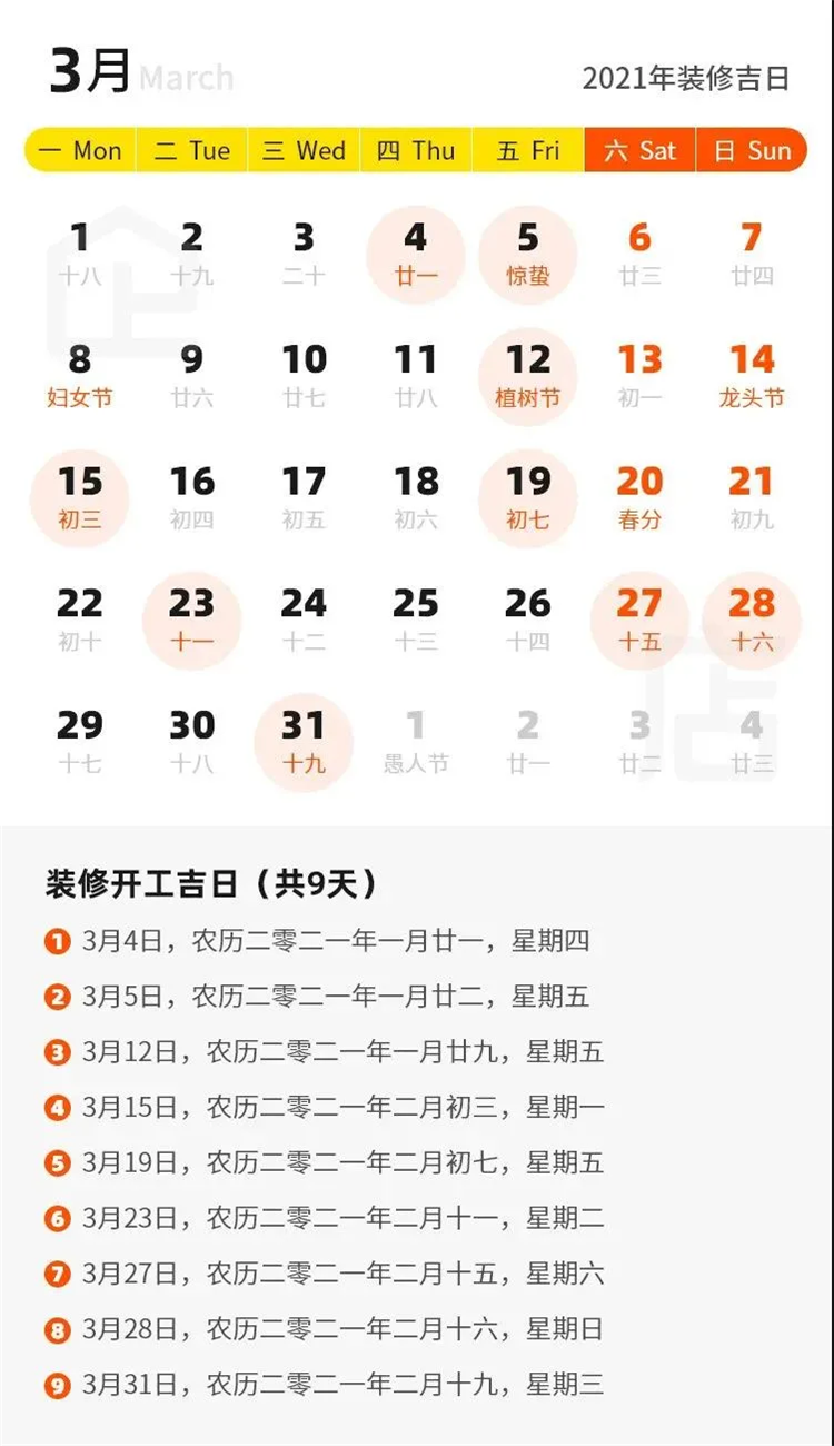 那么2021年有哪些裝修吉日呢?