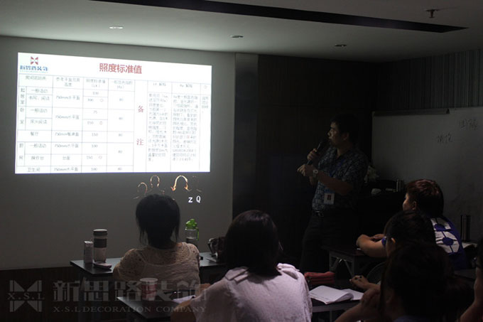 張總通過現(xiàn)場投影儀,對主要設(shè)計目標(biāo)、材料運用、照度標(biāo)準(zhǔn)值、家的空間、人體工程學(xué)、風(fēng)水基本要素、功能空間設(shè)計等進行了詳細(xì)的闡述和講解。與會資深設(shè)計師還分享了各自的設(shè)計心得體會,講解了不同裝修風(fēng)格中應(yīng)該注重的細(xì)節(jié),不可缺少的元素,設(shè)計與工藝的有效融合……張總和設(shè)計師們精彩、風(fēng)趣的演講,讓培訓(xùn)現(xiàn)場不時傳出陣陣掌聲與歡笑。