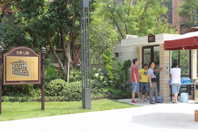 大家在小區(qū)大門口等候龍湖U城保安放行