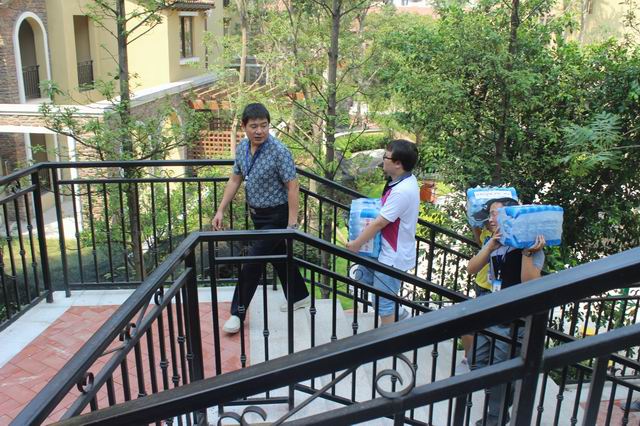在金源御府、麓山別苑、雅居樂、東方雅郡、龍湖U城、廊橋水鄉(xiāng)、融僑城等工地,張總、工程部文經(jīng)理等均親身參與到為工人派發(fā)防暑降溫物品的隊伍中。烈日下,他們的衣衫被汗水濕透,但他們依舊精神飽滿。在每一處工地,張總都會親自給工人師傅遞上一瓶水,并向他們表達最誠摯的慰問和感謝。他表示:“現(xiàn)在氣溫高,裝修任務重,大家辛苦啦!謝謝你們的辛勤工作,要注意安全,注意身體。”臨走時,他還反復叮囑大家要注意勞逸結(jié)合,合理安排好作息時間,調(diào)節(jié)好身體,身體好了才能工作好。