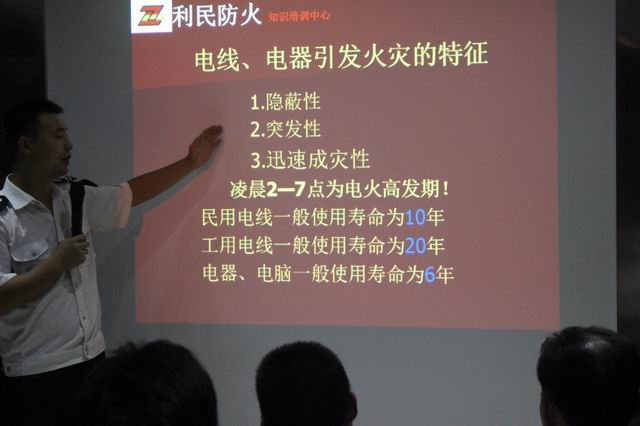 劉教官正在講解電路、電線引發(fā)火災(zāi)的特征