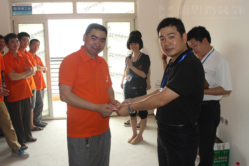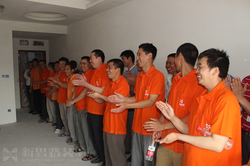 培訓當天天氣炎熱,氣溫高達36℃,但工人依舊精神飽滿,整齊穿戴新思路工服,井然有序的排成一列,展現(xiàn)出新思路裝飾施工隊伍團結向上的新形象。在培訓中,張總以現(xiàn)場工地為實例,通過一些鮮活的事例,全面剖析了漆工工種現(xiàn)階段工藝技術提升要領,對照問題、難點尋找最佳解決方案,提出了很多創(chuàng)新性的漆工工藝,他的精彩發(fā)言不時博得工人們的陣陣掌聲。同時,工人們也針對實際施工情況提出了一些獨到的觀點和見解,對于積極發(fā)言的工人,工程部也當場給予現(xiàn)金獎勵,培訓現(xiàn)場掌聲不斷,氣氛輕松而熱烈。培訓最后,張總作了總結性發(fā)言。他表示:“漆藝水平事關工程質量和客戶口碑,我們的工人們一定要多思考、多學習,努力鉆研新的漆工技藝,提高自身的漆工水平。同時也希望你們能把新思路當成自己的家,大家都能在這個舞臺上共同進步,共同提高,賺更多的錢!”張總樸實真摯的話語再次博得了所有人的熱烈掌聲。