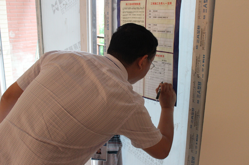 文經(jīng)理在工地巡查表上簽字