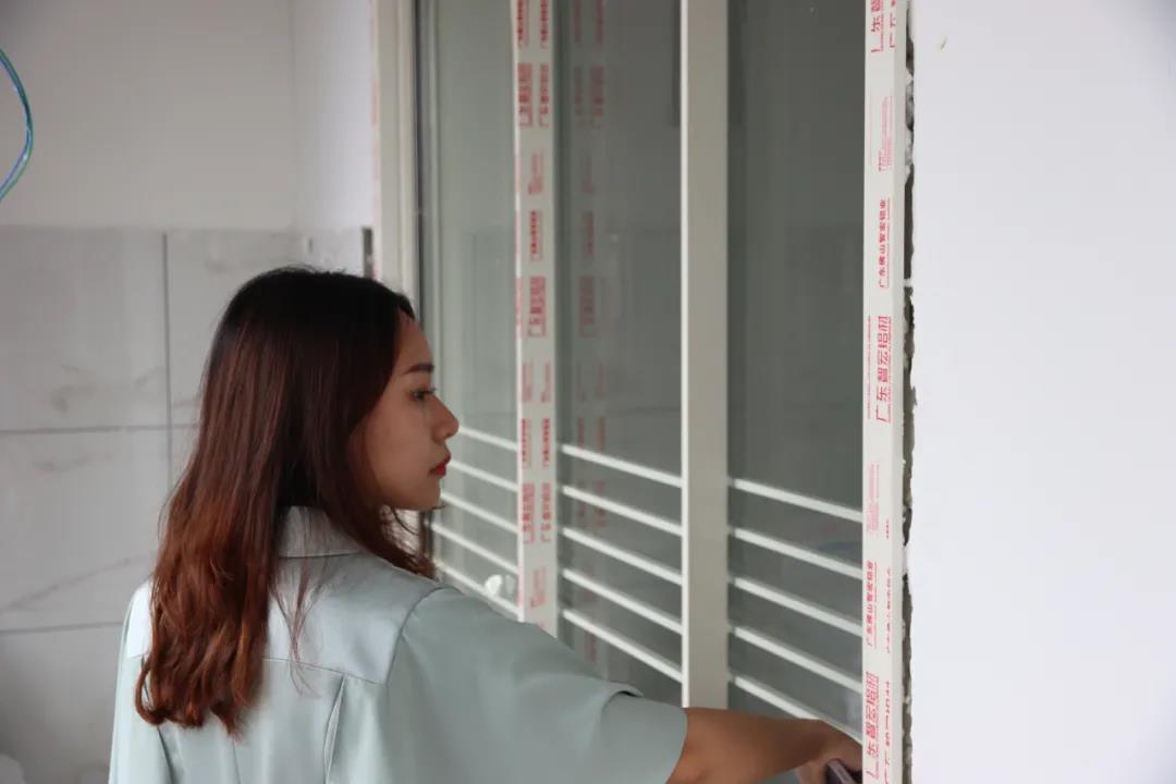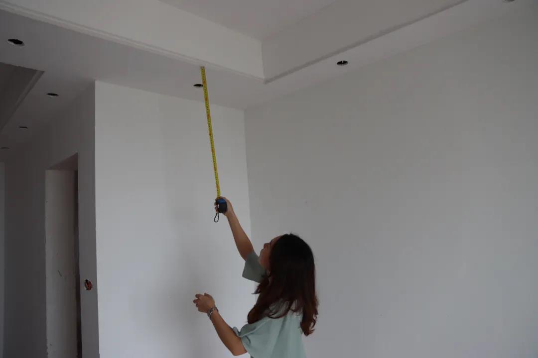 ▲設(shè)計師陳薇正在檢查門窗與吊頂?shù)?/span>