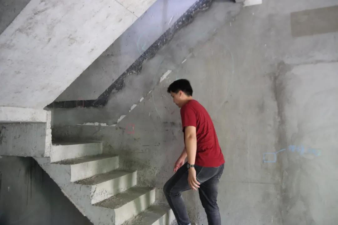 ▲設(shè)計(jì)師戴杰準(zhǔn)備上樓查看現(xiàn)場(chǎng)