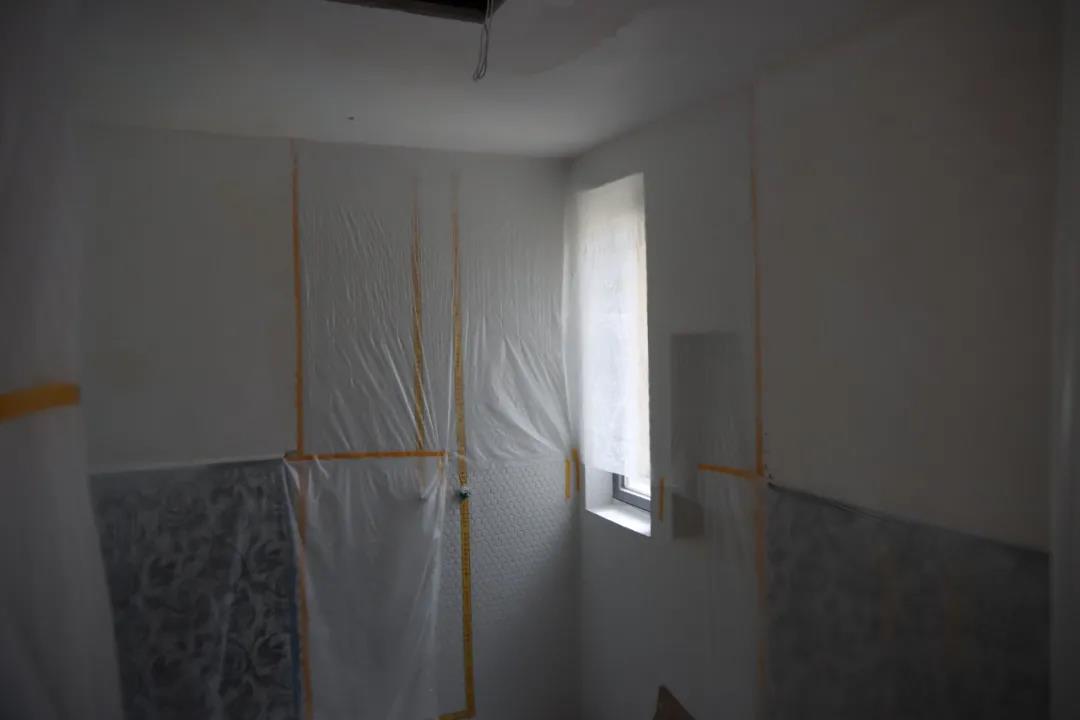 ▲已經(jīng)完成的衛(wèi)生間造型做好了保護(hù)措施