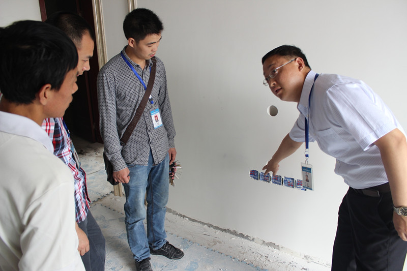 此次巡查嚴(yán)格遵循公司檢查制度和流程,檢查項(xiàng)目包括工程進(jìn)度、安全防護(hù)、工程形象、工地衛(wèi)生、成品保護(hù)、工藝標(biāo)準(zhǔn)等近百余項(xiàng)國家標(biāo)準(zhǔn)。大如是否私自變動工程,是否按公司規(guī)定使用主材和輔材;細(xì)微如每一個線頭的安全保護(hù),每一塊瓷磚之間的縫隙寬窄,均按公司標(biāo)準(zhǔn)嚴(yán)格檢查?,F(xiàn)場發(fā)現(xiàn),現(xiàn)場指導(dǎo),現(xiàn)場整改,將工程質(zhì)量問題控制在發(fā)生階段。巡查小組事無巨細(xì)的檢查、對施工質(zhì)量的嚴(yán)苛態(tài)度,讓在場的業(yè)主與施工工人都深刻體會到了新思路對于工程質(zhì)量近乎偏執(zhí)的高要求。文經(jīng)理在檢查的同時,也現(xiàn)場對新進(jìn)的項(xiàng)目經(jīng)理進(jìn)行了指導(dǎo)和教學(xué),不斷強(qiáng)調(diào)公司工程施工上的一些標(biāo)準(zhǔn)和要點(diǎn),并把自己的工程管理經(jīng)驗(yàn)分享給他們。