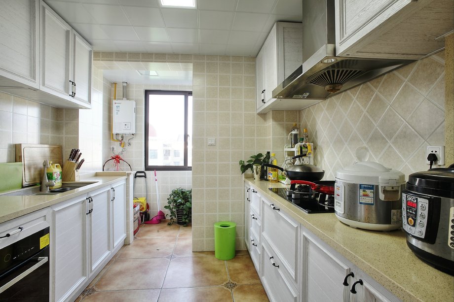 廚房的燈要明亮,這樣眼睛就能不費(fèi)力的看清楚要切的是蒜苗還是蔥;燈泡,不要裝黃燈,不然,蔬果肉類的顏色易失真。記得廚房是打仗的地方,不是搞氣氛的地方。現(xiàn)在吊頂主燈有幾種做法,包括嵌燈,日光燈或流明吊頂。流明吊頂是利用亞克力板或白膜玻璃嵌入頂棚中,好處是可讓光源更均勻的灑下,但缺點(diǎn)是造價(jià)比較貴但廚房要亮,不是靠吊頂燈,而是要加強(qiáng)重點(diǎn)照明,例如在切菜的臺(tái)面上方以及燃?xì)庠钌戏剑钥稍偌友b一盞燈。