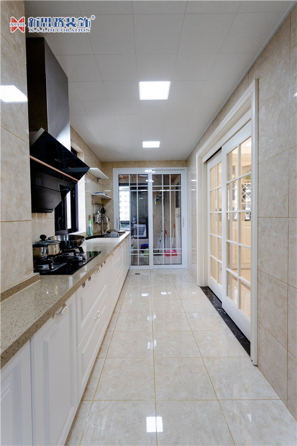 其二,充分利用空間。利用地柜與吊柜的空間的墻面,安裝擱架,可以放置消毒柜微波爐或安裝擱板、掛鉤、杯、調(diào)料瓶、鏟子、勺子等,這樣就避免了它們占據(jù)櫥柜臺面。